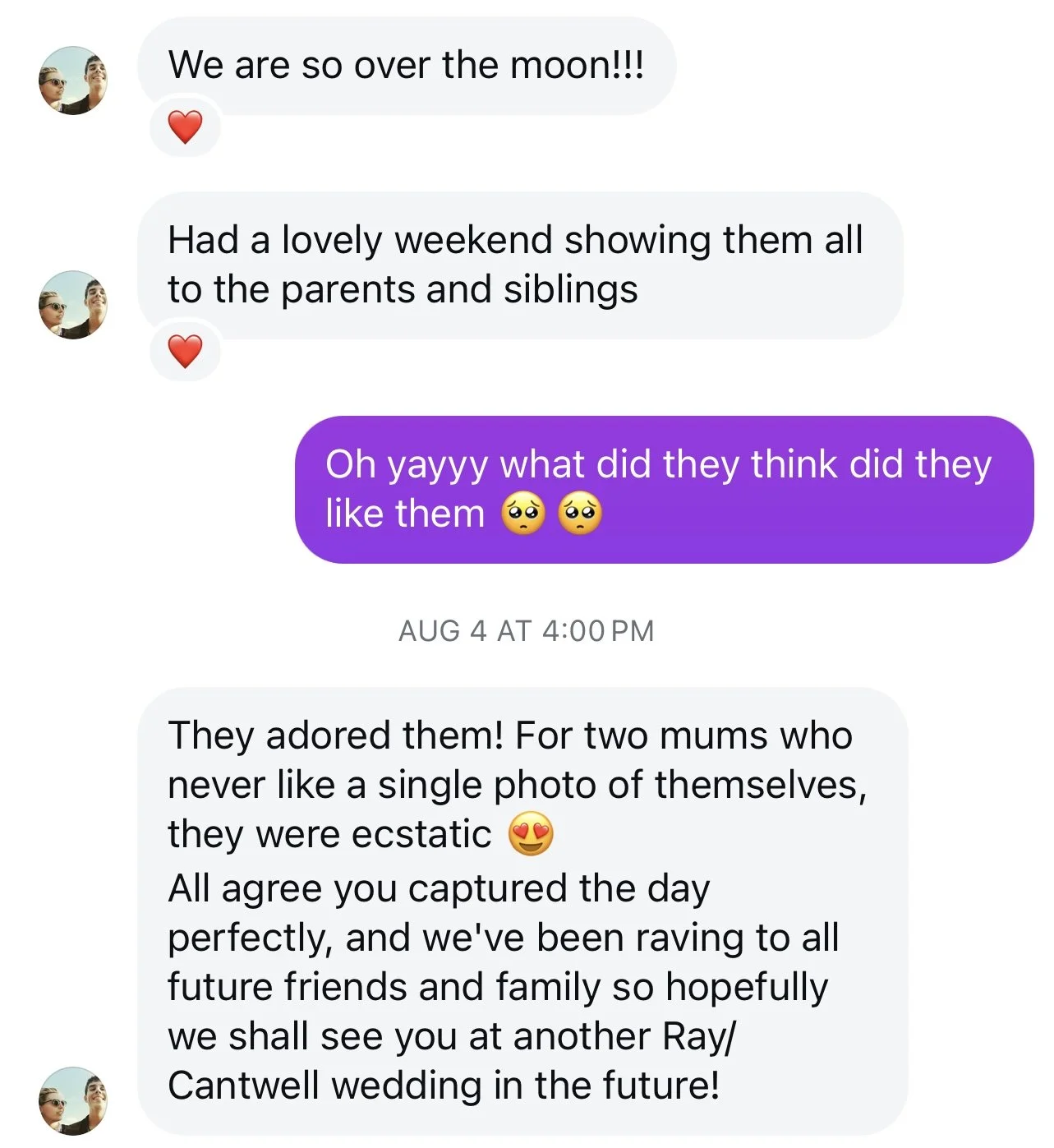 I know being in front of the camera can be a bit daunting for some, so whilst 95% of my work is candid and unposed, I’m happy to take group shots and direct you gently so you feel comfortable to be yourself: no stiff poses, just gentle prompts to encourage movement.